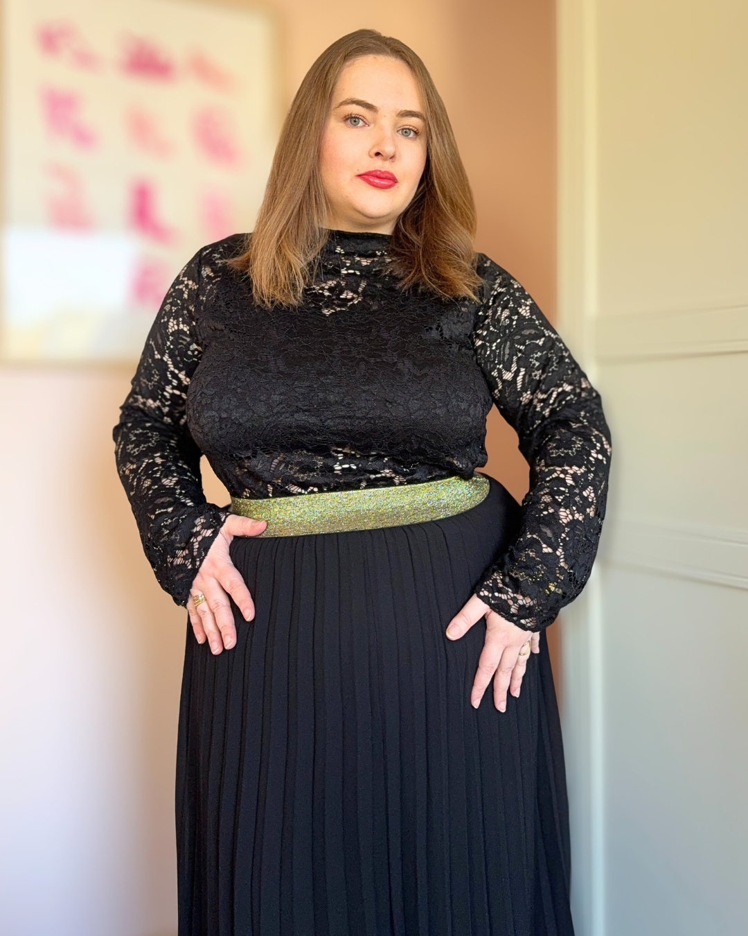 Haut en dentelle. 100% dentelle : à porter avec un débardeur ou une brassière.