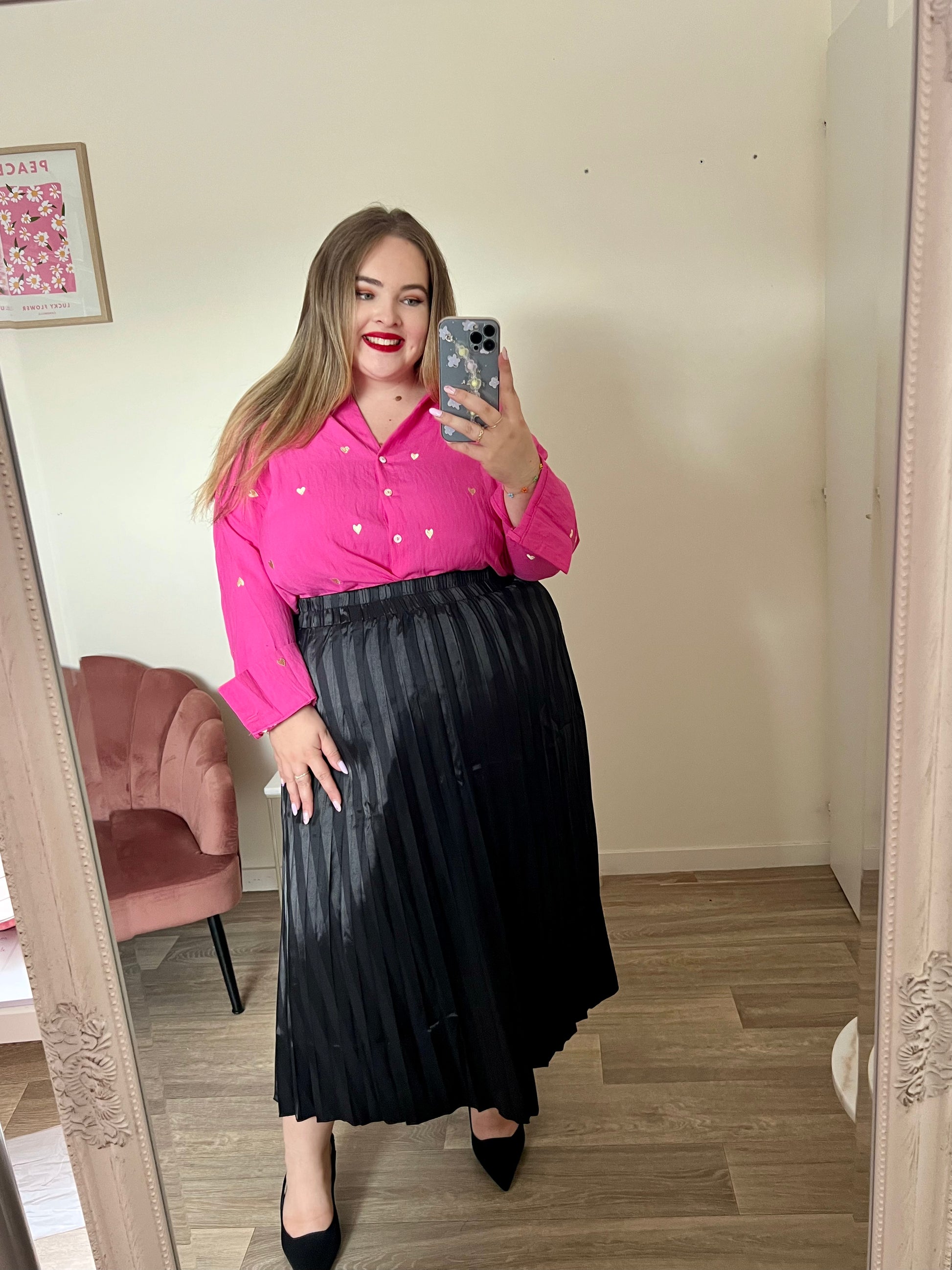 Jupe midi plissée satinée noire (existe aussi en beige)